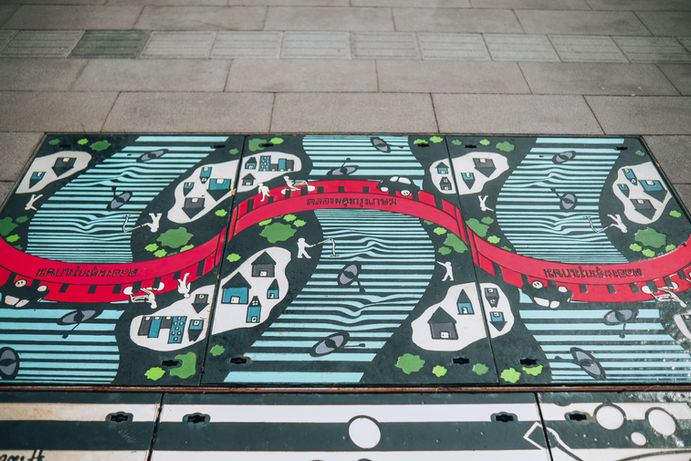 ศูนย์วิจัยชุมชนเมือง (Urban Studies Lab: USL) ได้จัดกิจกรรมออกแบบฝาท่อร่วมกับน้อง ๆ นักเรียนจากโรงเรียนบำรุงอิสลามวิทยาและมูลนิธิ The Hub สายเด็ก ในหัวข้อ “คลองของฉัน เมืองในฝัน” ซึ่งได้รับการสนับสนุนกิจกรรมจากกรุงเทพมหานคร เป็นส่วนหนึ่งของโครงการพัฒนาภูมิทัศน์ทางเท้าในพื้นที่ริมคลองผดุงกรุงเกษม เพื่อสร้างพื้นที่เชิงสังคมในย่านนางเลิ้ง และสนับสนุนการพัฒนาเมืองอย่างสร้างสรรค์ และได้ส่งต่อภาพวาดฝีมือของน้อง ๆ ไปยังนักออกแบบกลุ่มเมืองยิ้ม จนออกมาเป็นฝาท่อที่ส่งเสริมและสนับสนุนการออกแบบ วางแผน และพัฒนาเมืองที่ตระหนักถึงผู้คนและความหลากหลายในเชิงค่านิยมและความคิด ผ่านการออกแบบฝาท่อที่สร้างเรื่องราวและมอบสีสันให้กับการเดินเท้าในเมือง